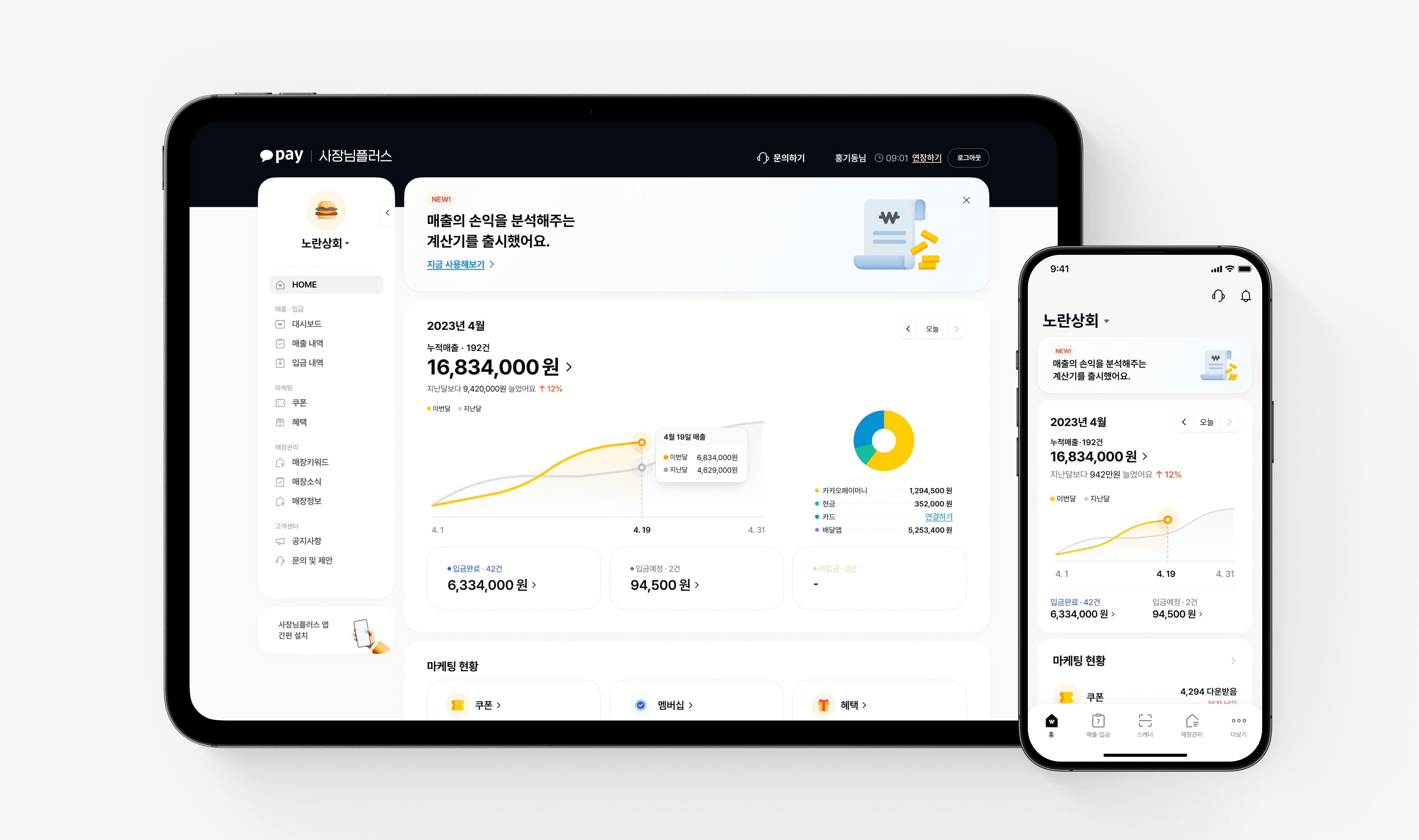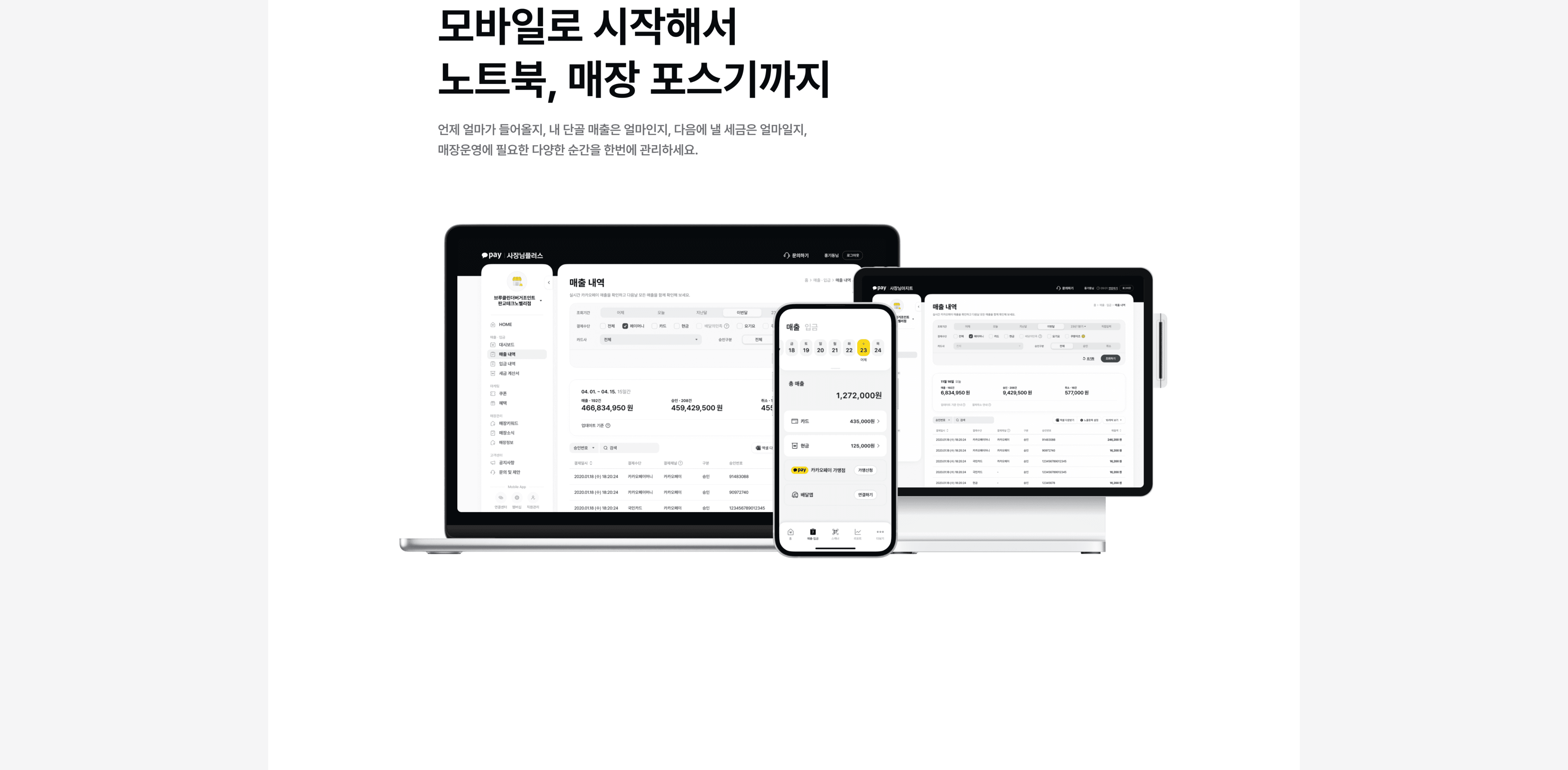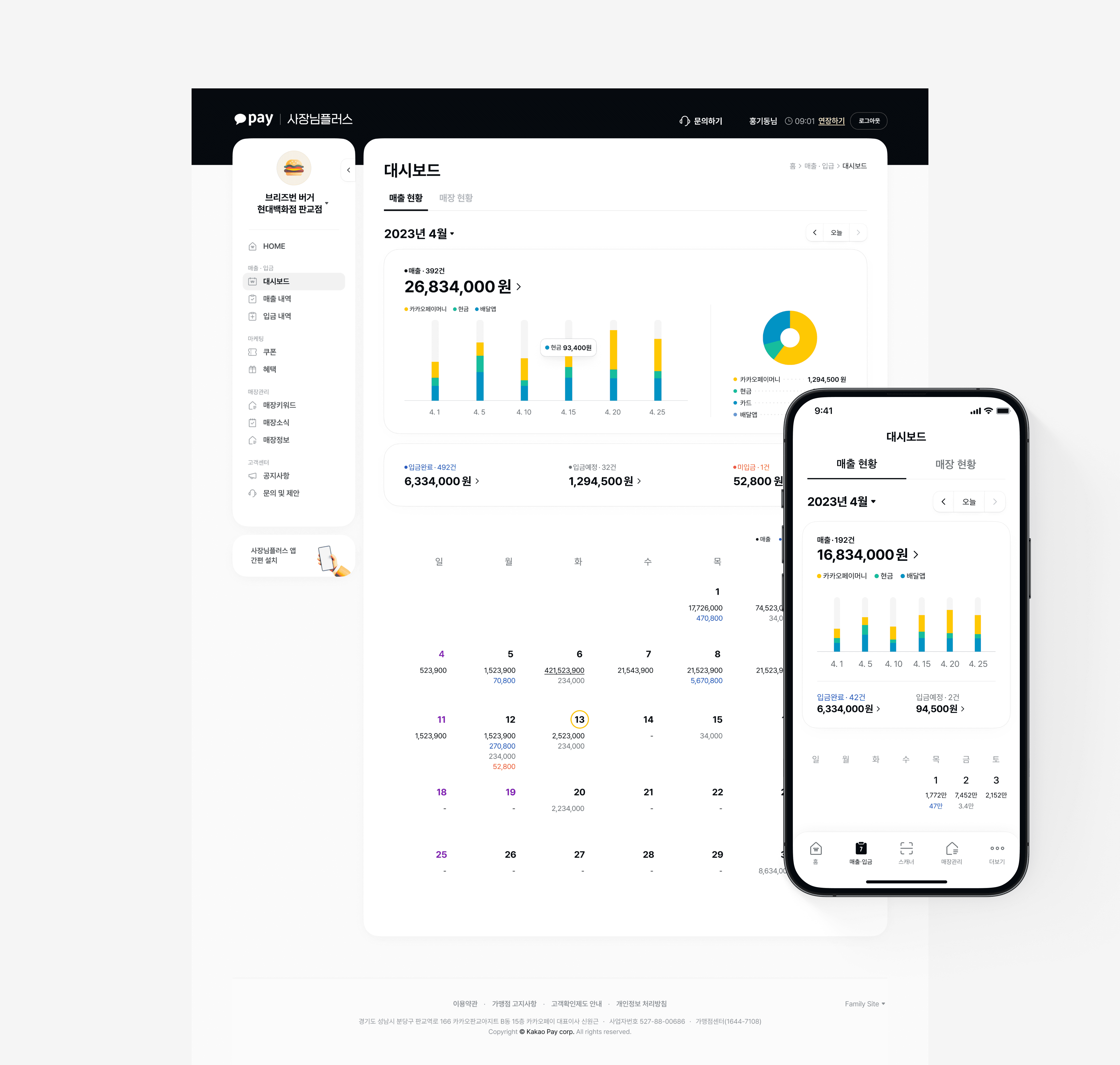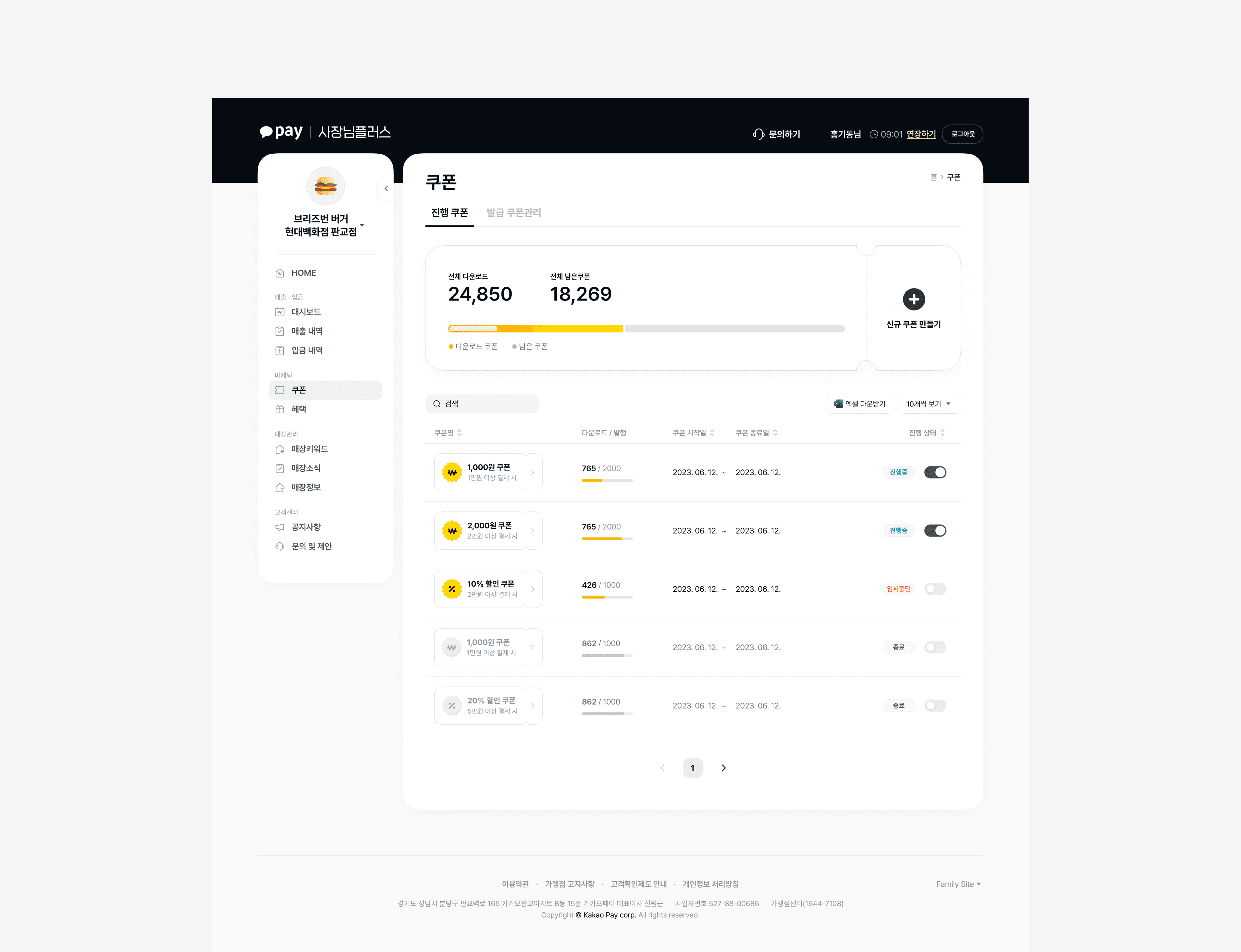 A suite of integrated store management tools for Kakao Pay merchant operators.