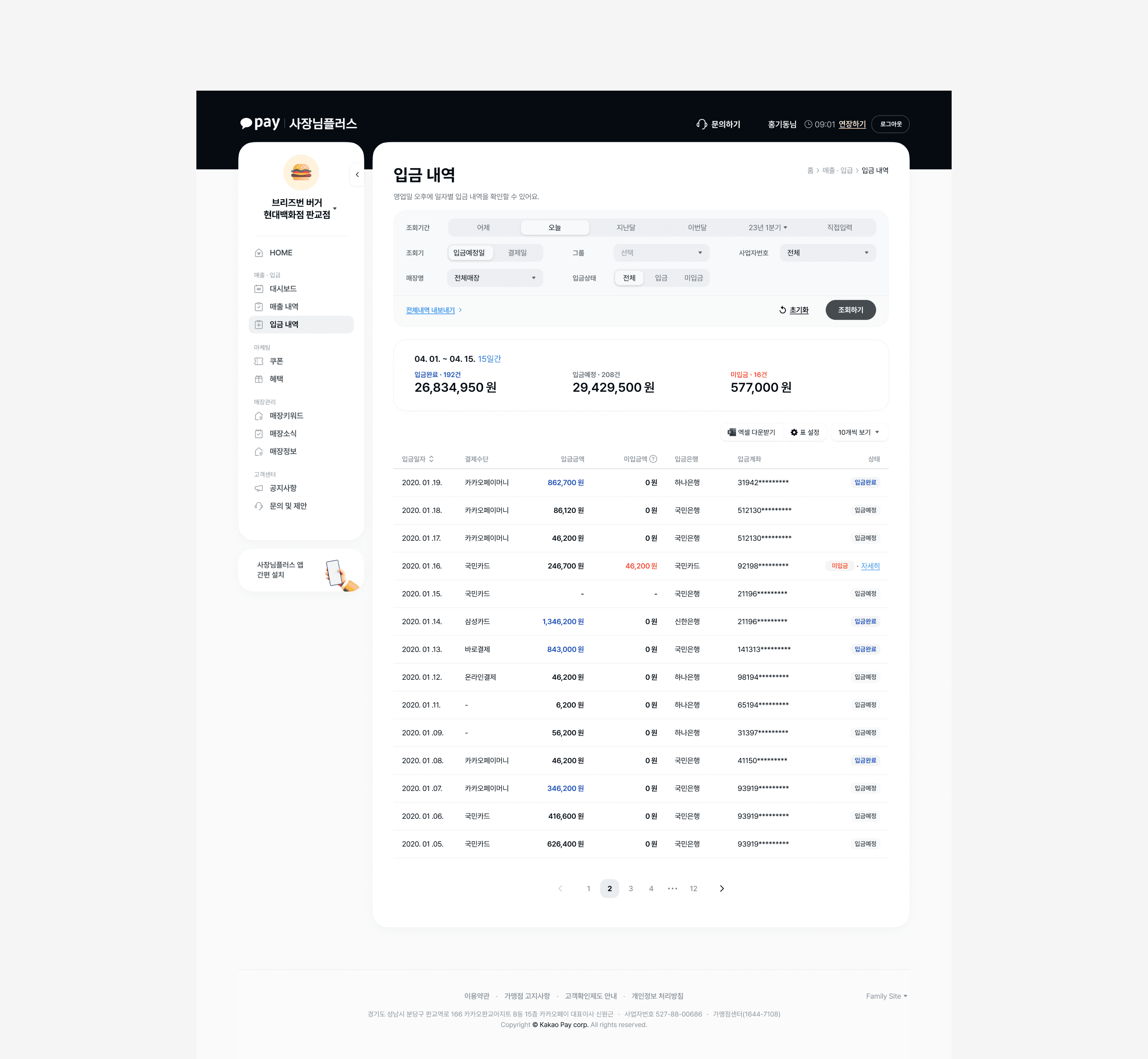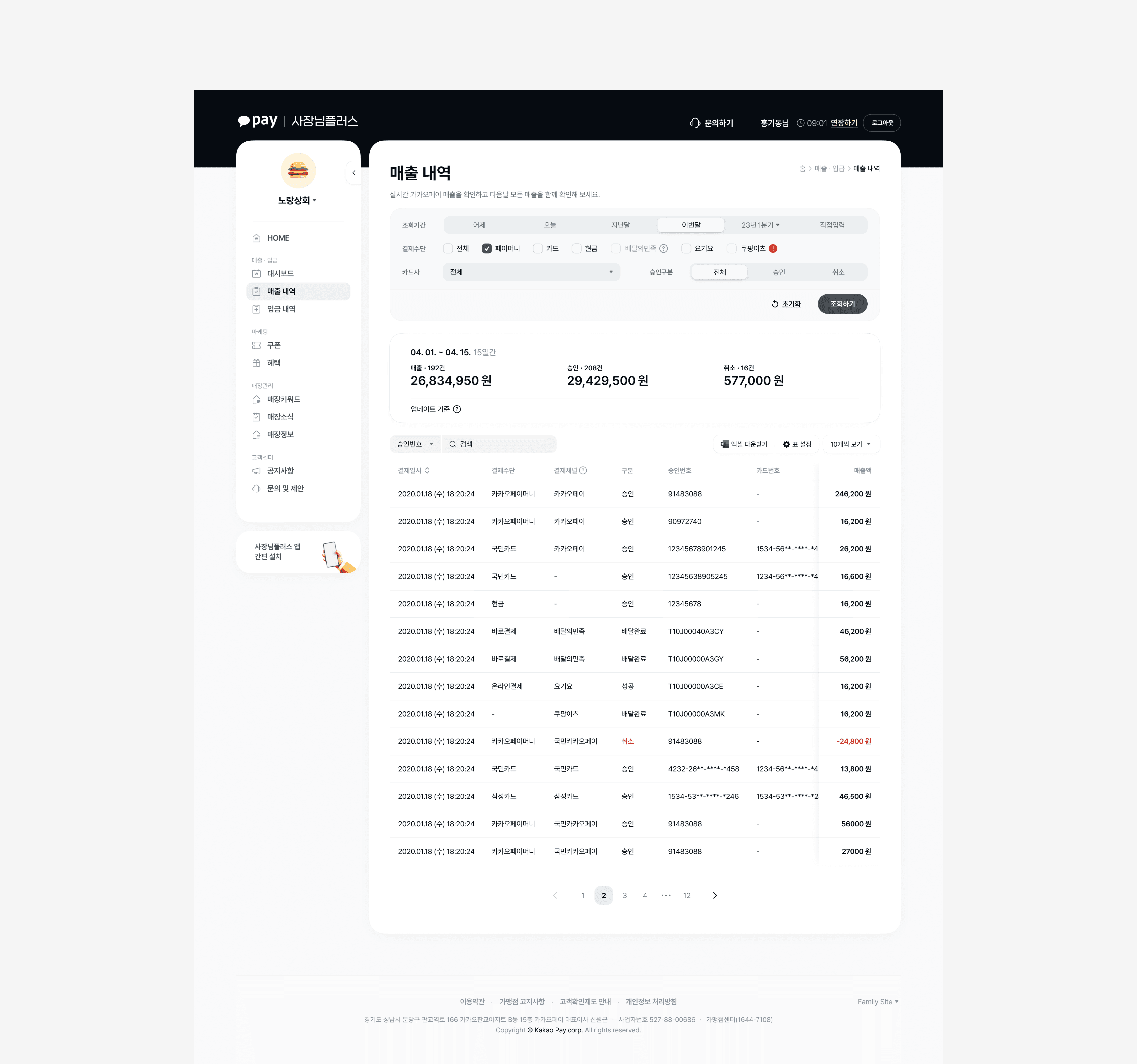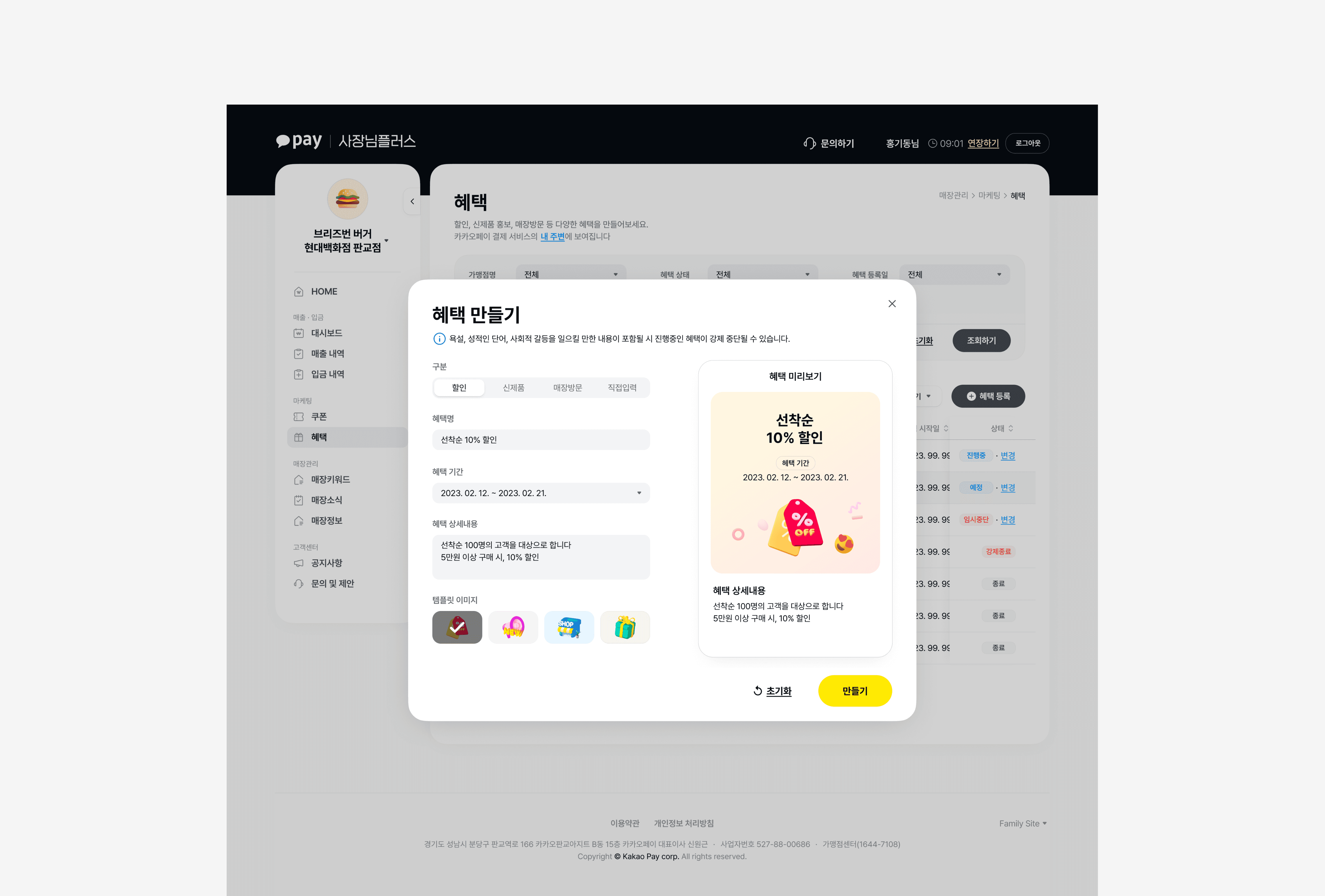 A suite of integrated store management tools for Kakao Pay merchant operators.