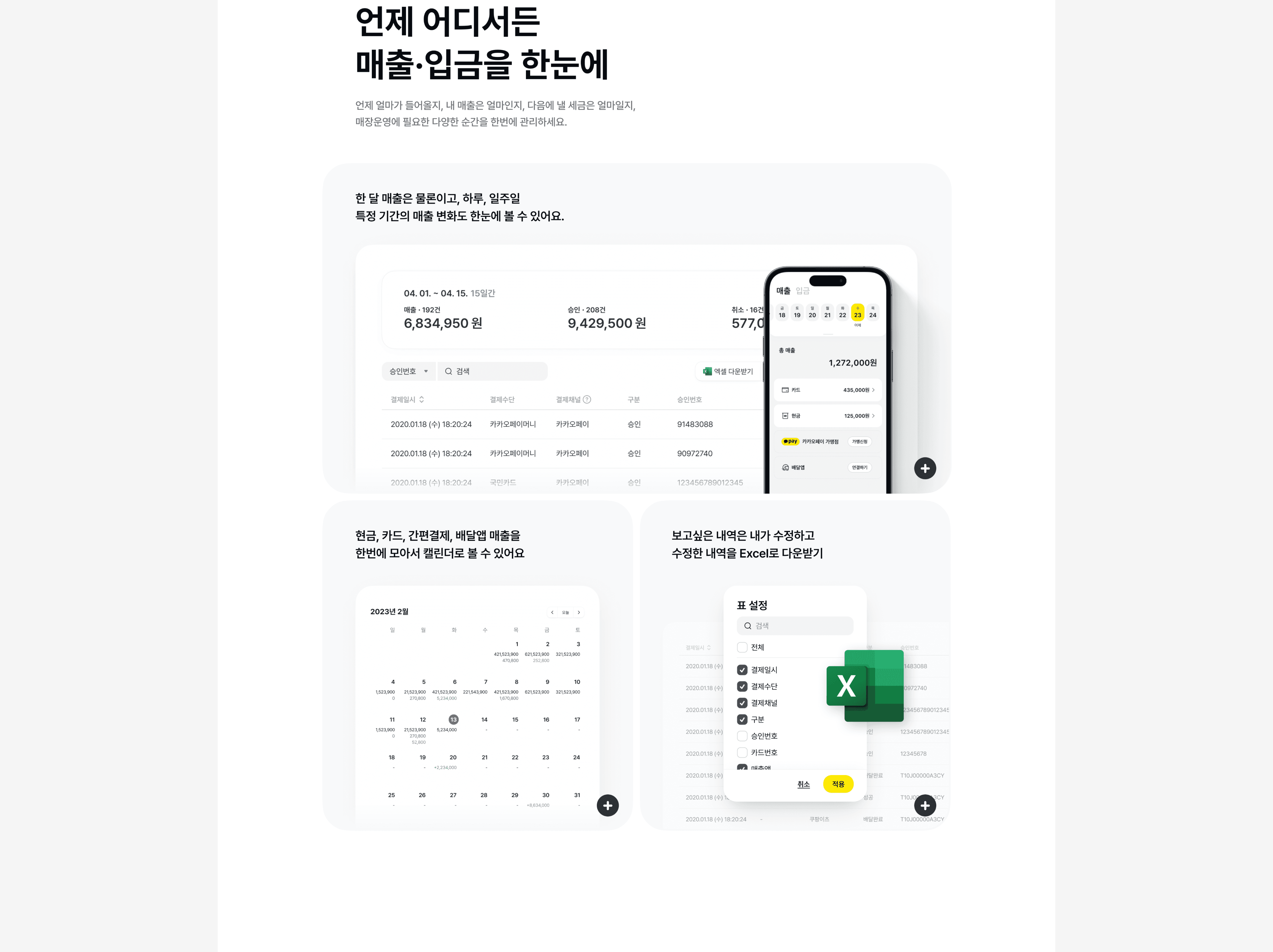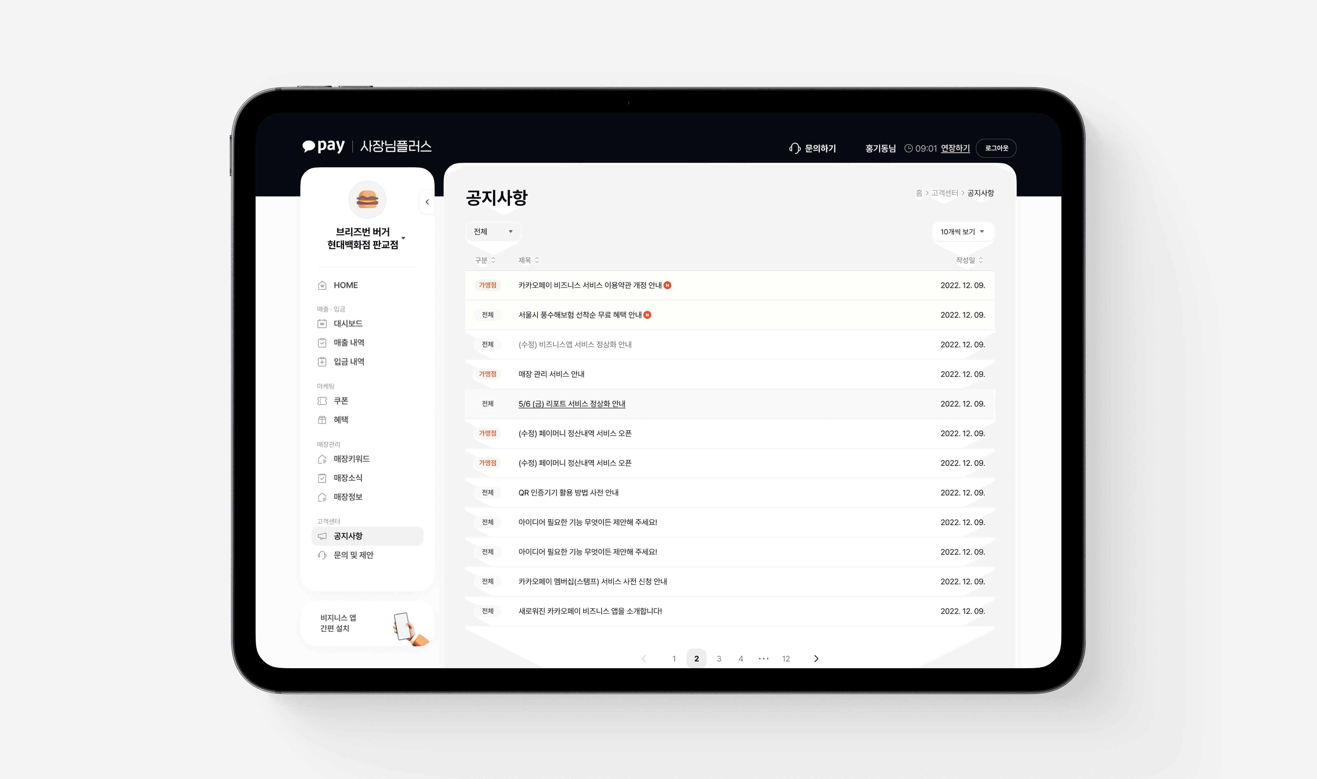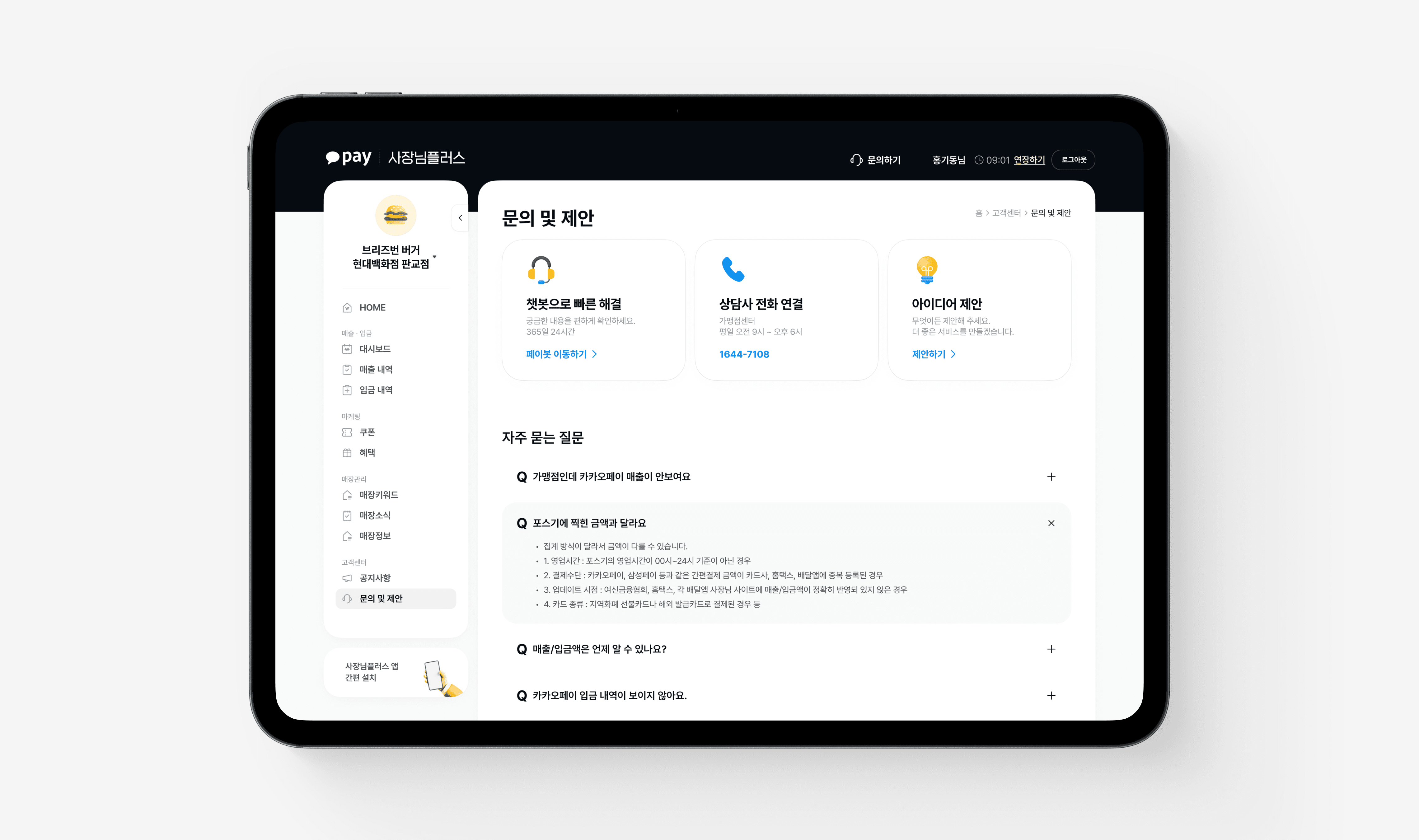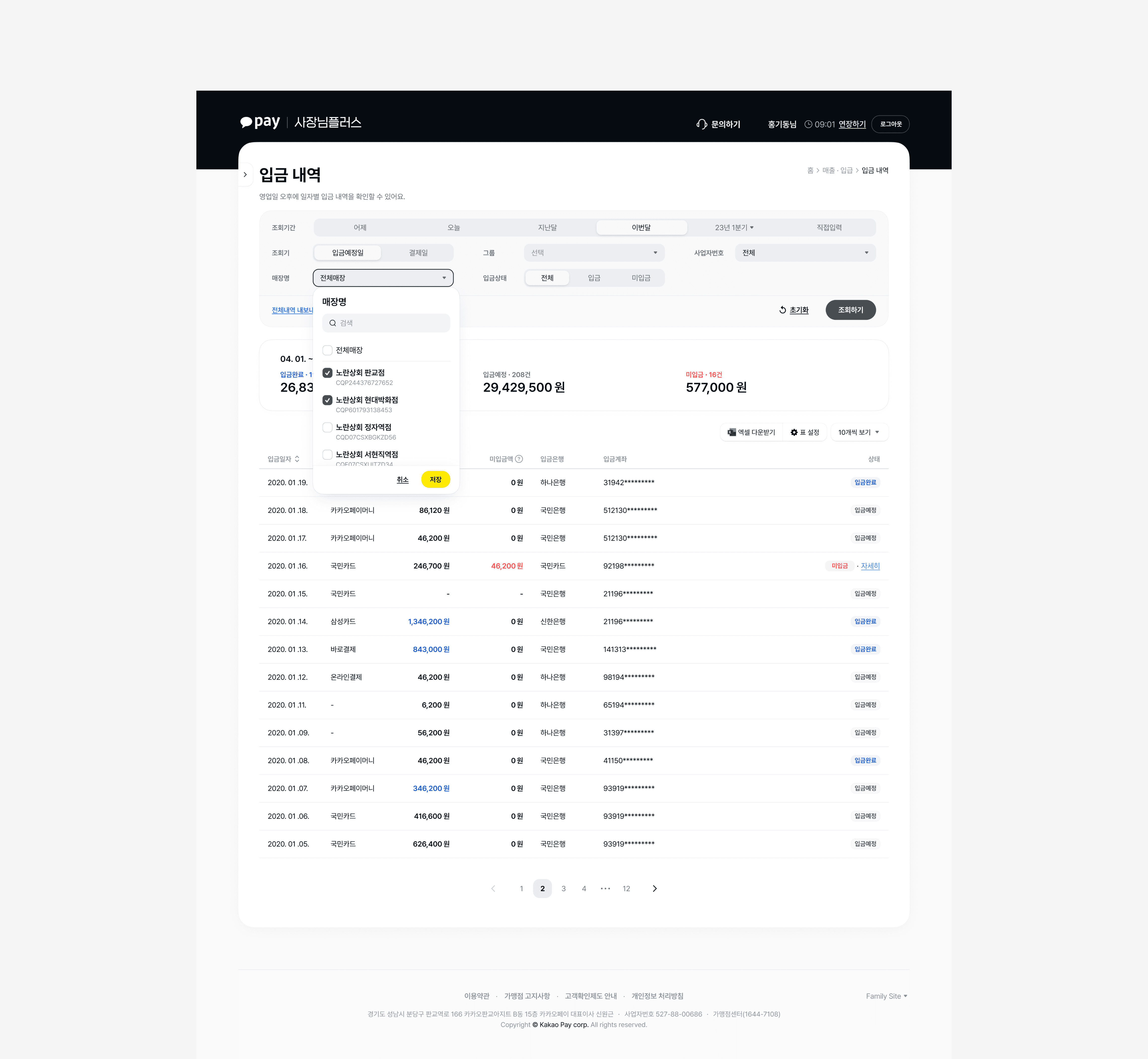 A suite of integrated store management tools for Kakao Pay merchant operators.