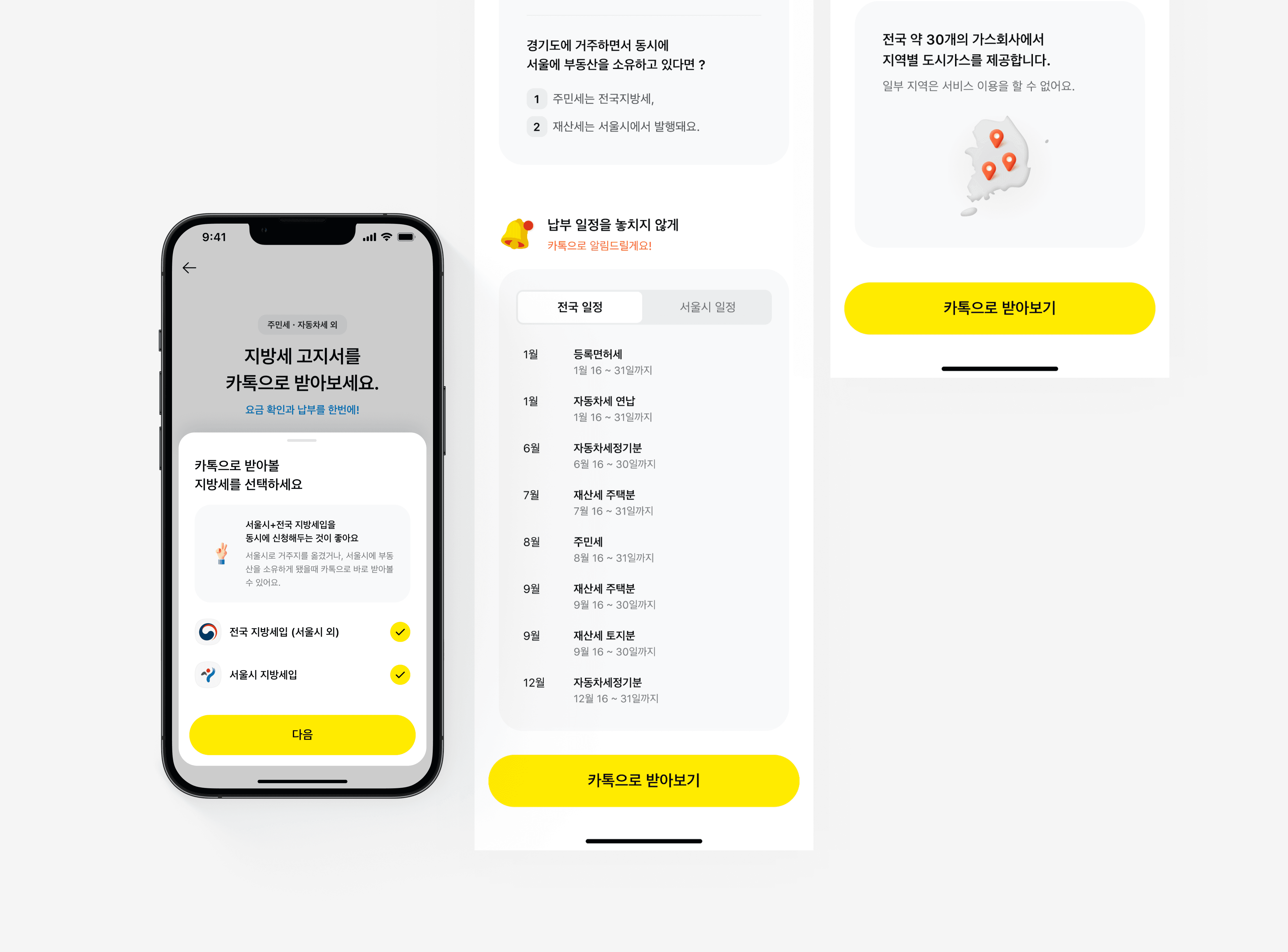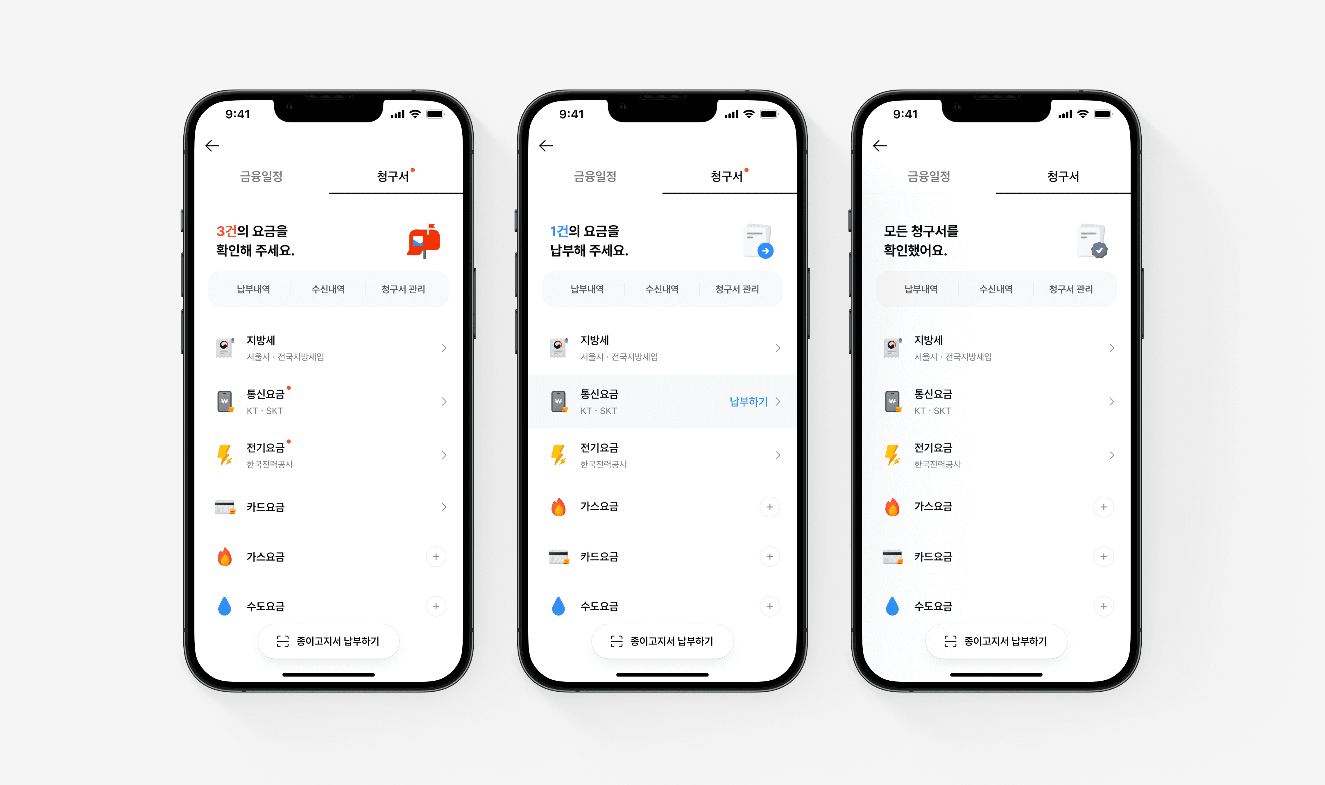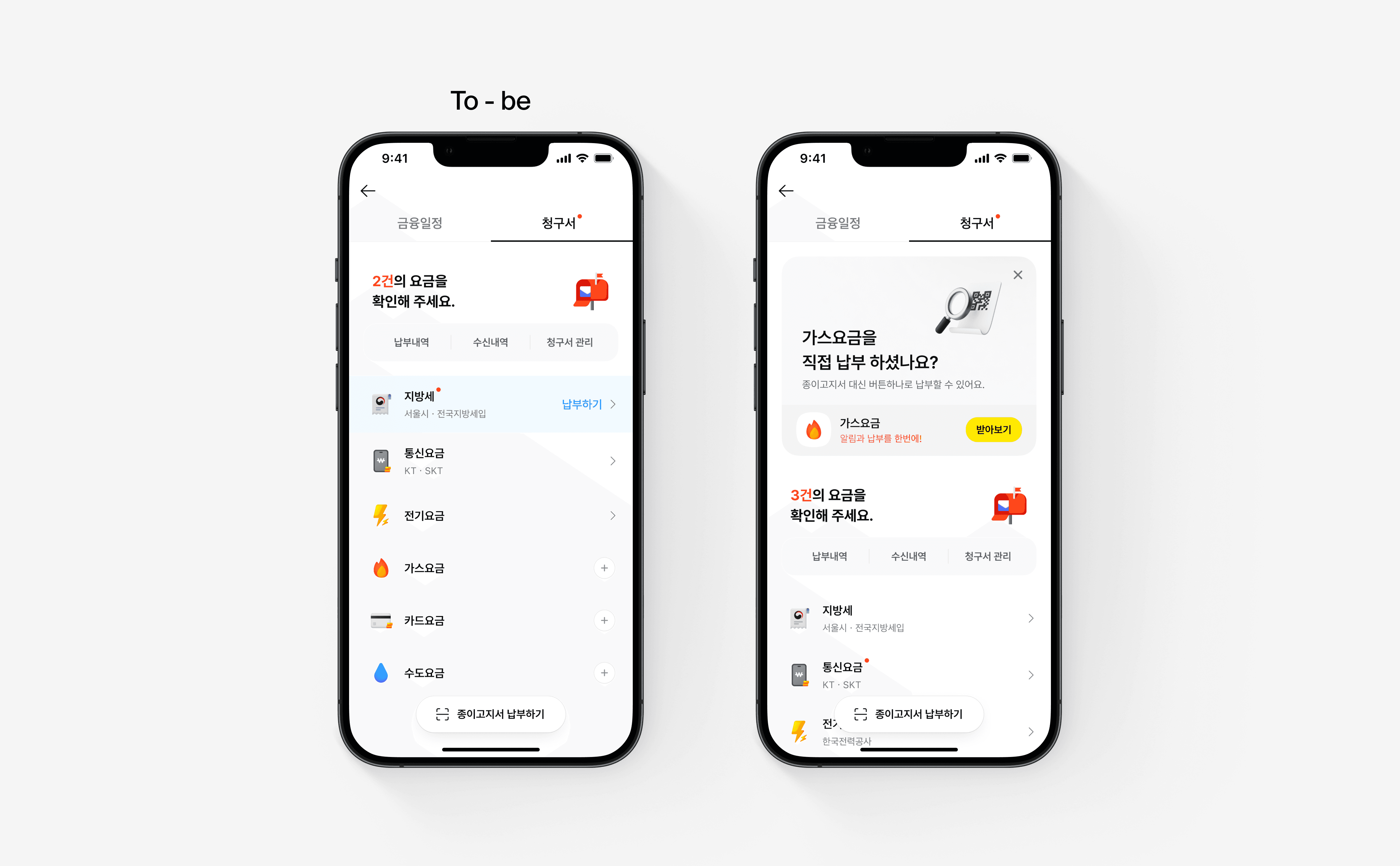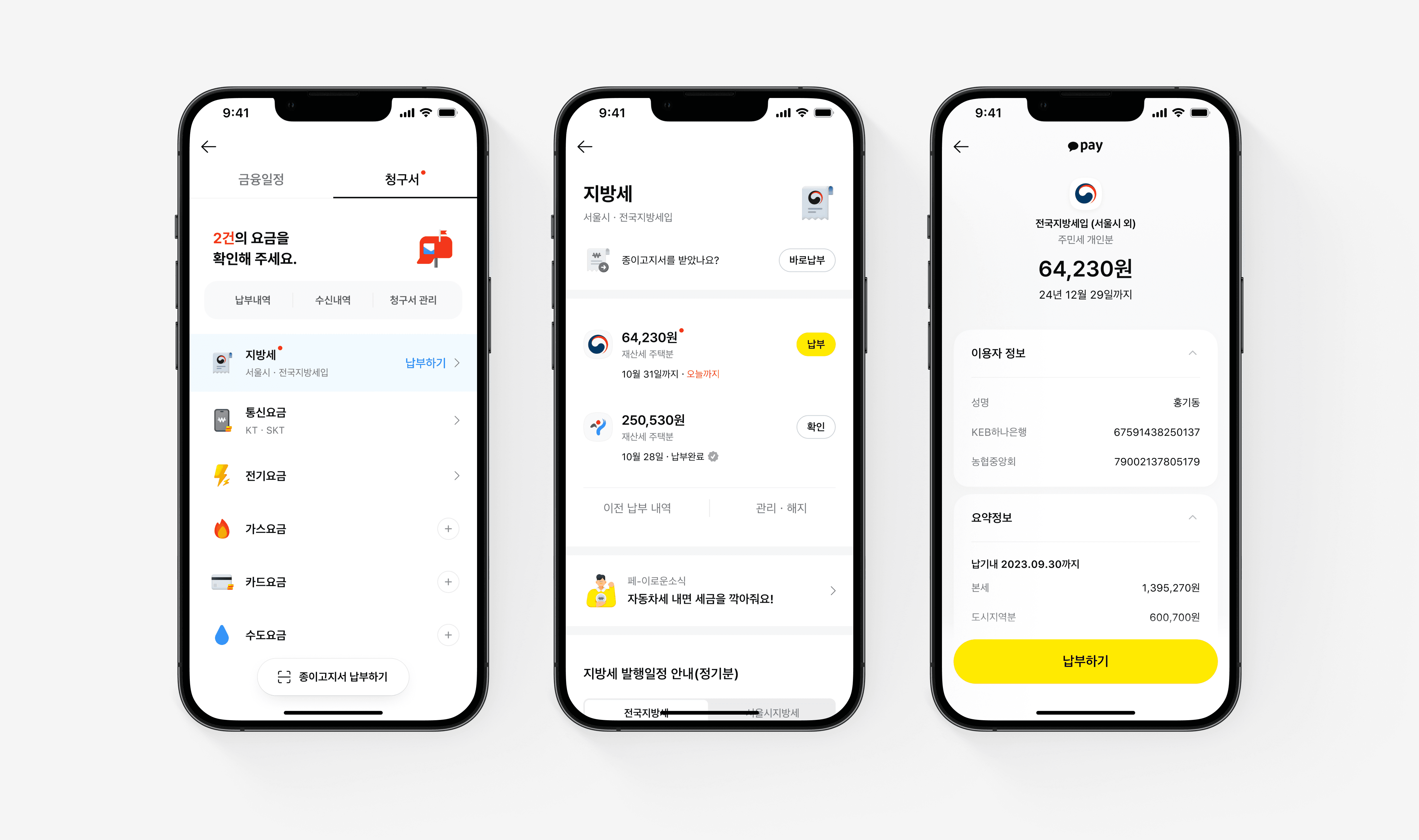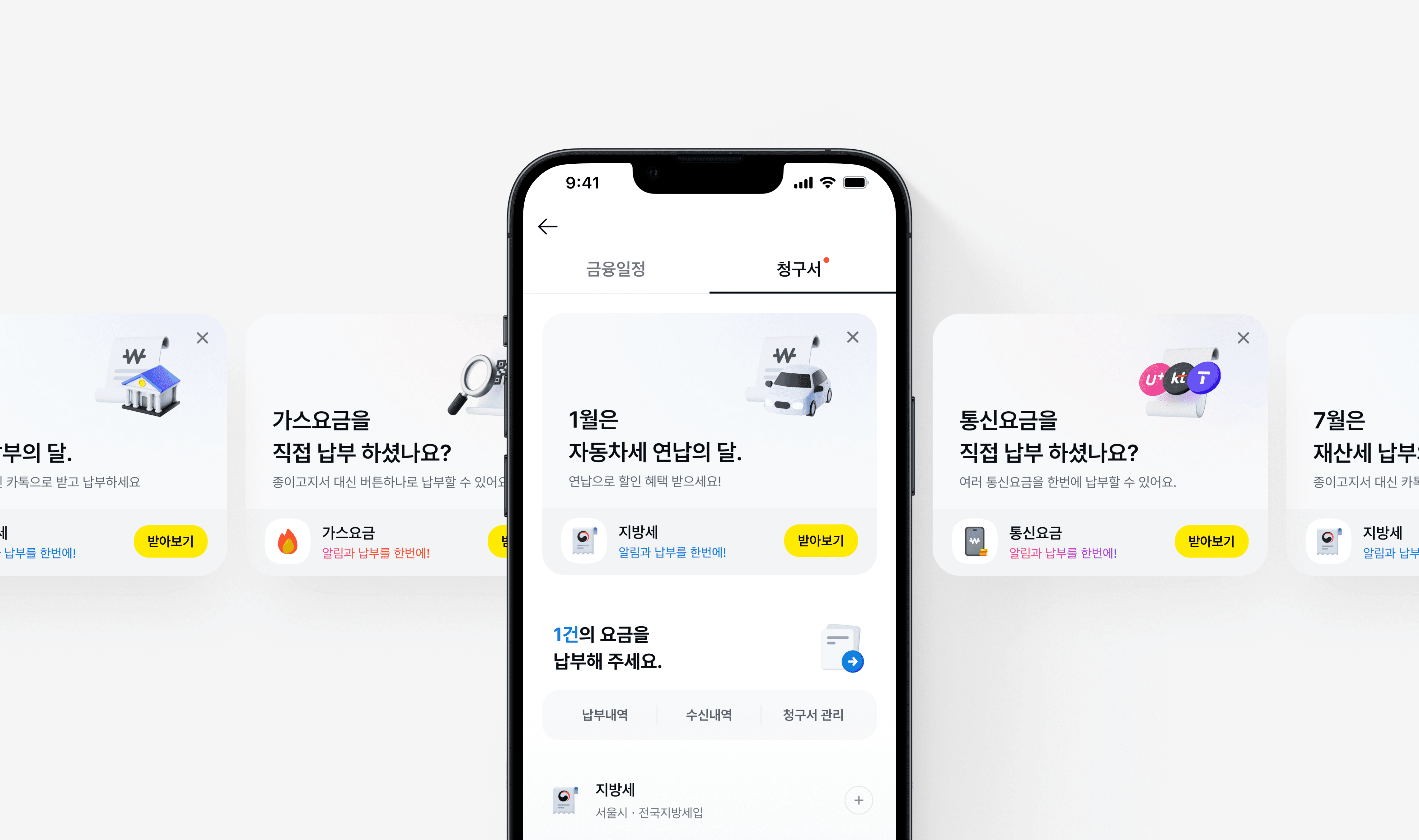 Kakao Pay Living bill payment is Korea's first mobile messenger-based electronic bill payment (EBPP) service. Manage all your scattered living expenses, gas and electricity bills, telecommunications charges, and local taxes all at once with Kakao Pay. From notifications received via KakaoTalk to payments, all in one place!